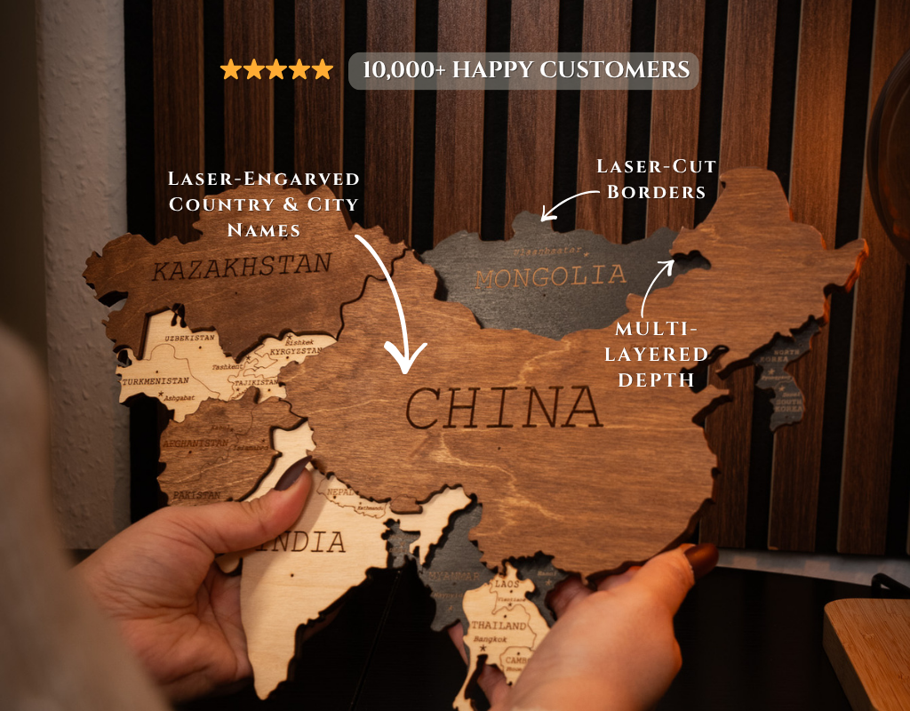 We are a passionate team dedicated to designing and handcrafting unique, high-quality wooden maps. Each piece is a work of art crafted from layers of natural wood to create a beautiful and detailed 3D effect.