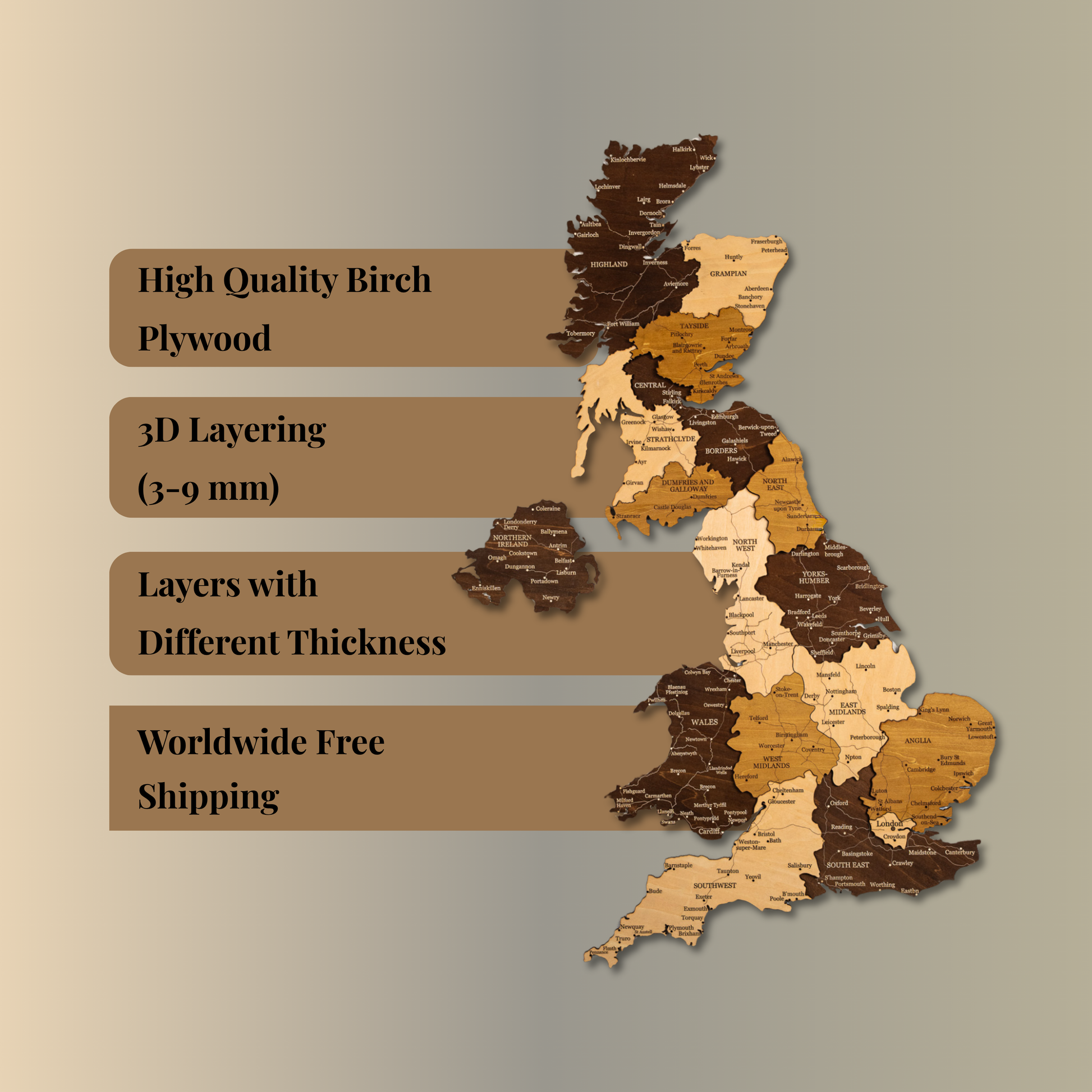 Η εγκατάσταση ενός τρισδιάστατου ξύλινου χάρτη μπορεί να διαρκέσει από 1 έως 2 ώρες , ανάλογα με το μέγεθος του χάρτη και την επιφάνεια του τοίχου. Στη συσκευασία περιλαμβάνεται ένας οδηγός βήμα προς βήμα για να σας βοηθήσει με τη διαδικασία εγκατάστασης.