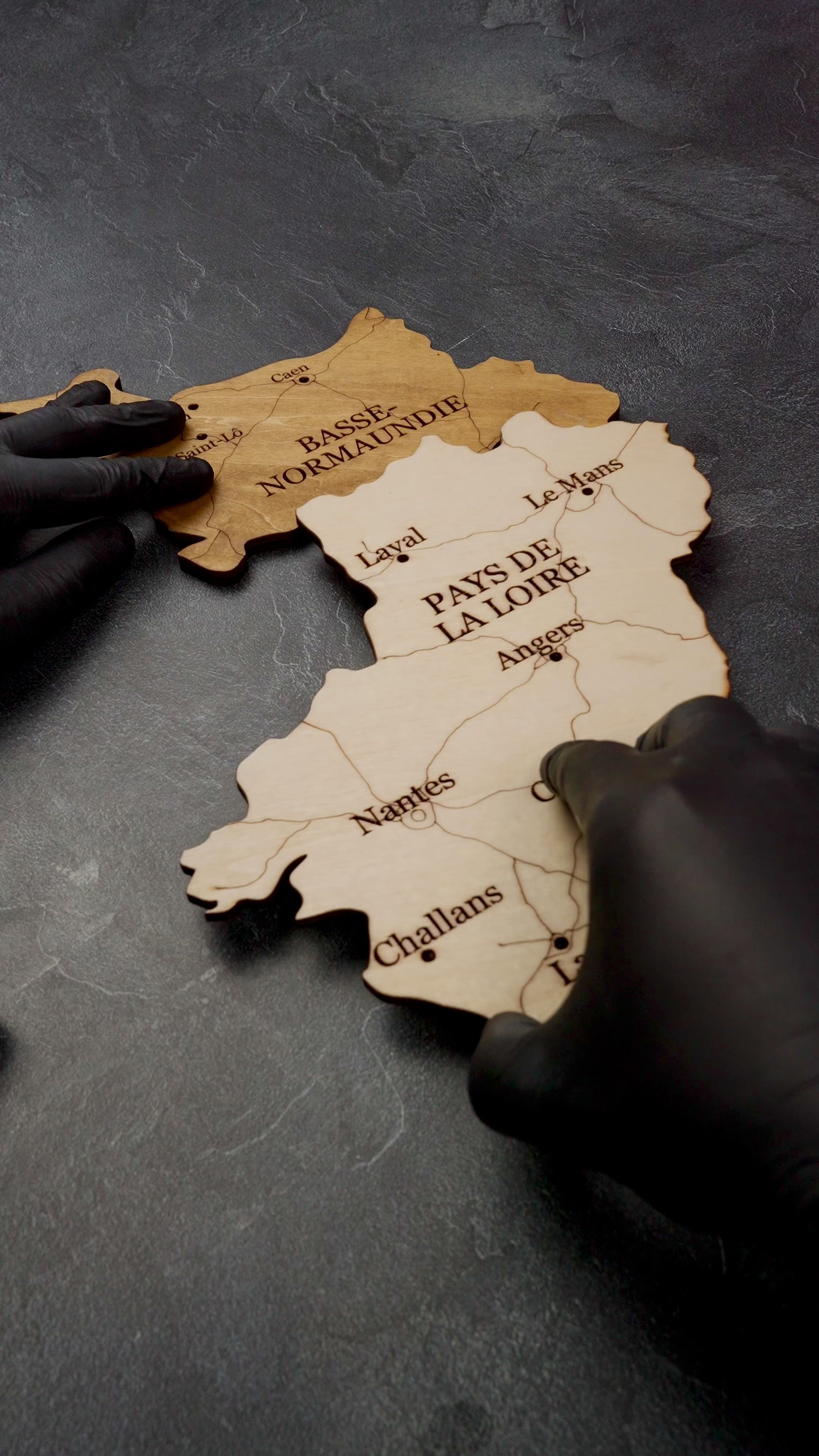 Our France 3D Wooden Map has an elegant Matte Finish with three different layers, each has its own color. The Map layers thickness vary from 3 to 9 mm (0.12'' - 0.35'')